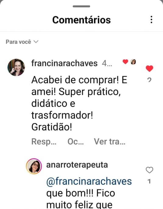 “Uauuuu Ana, já tinha feito um monte de terapia e não tinha conseguido nada, nenhum resultado. Já falei pra minha mãe que quero fazer terapia com você.